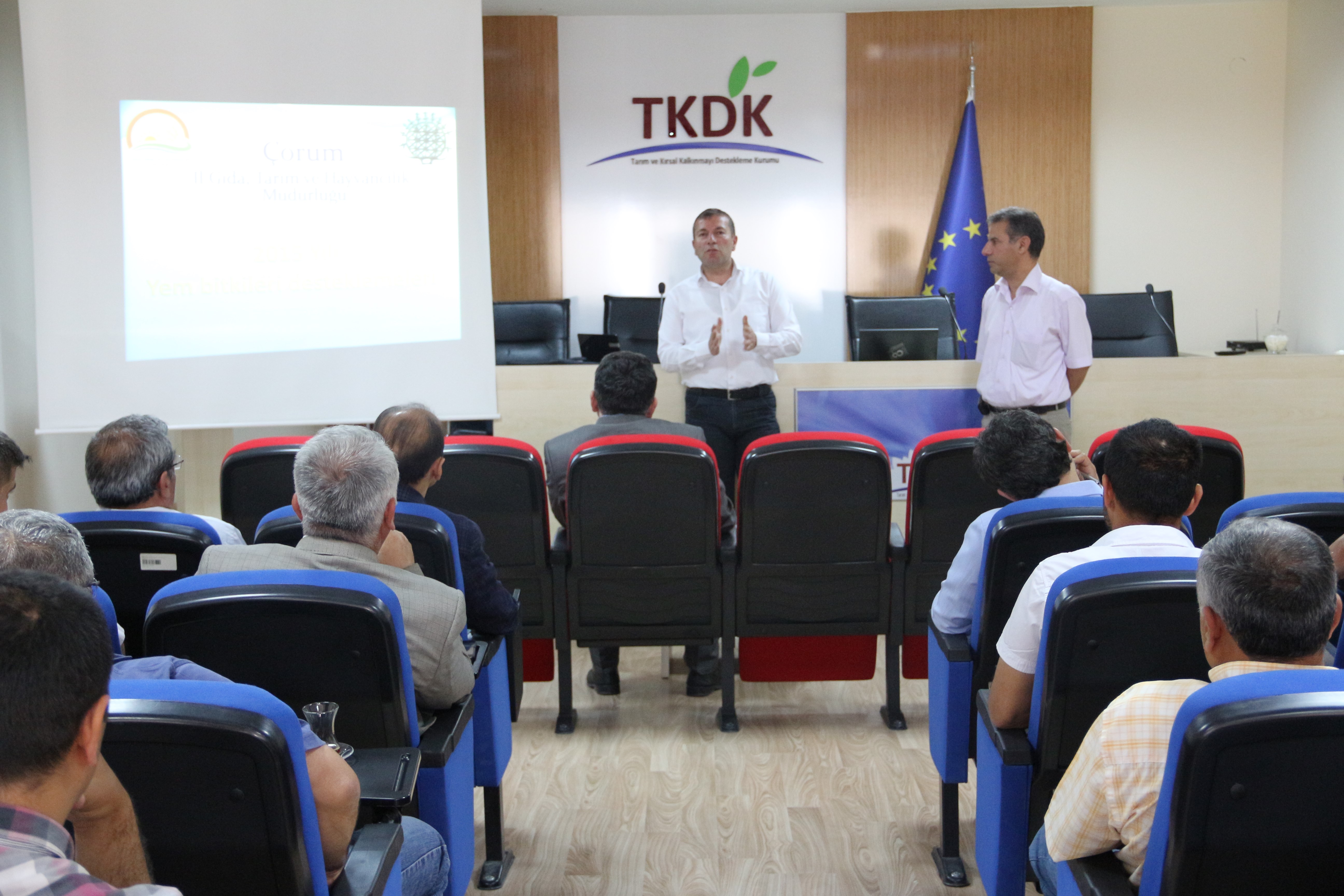 Çorum İl Koordinatörlüğü toplantı salonunda, TKDK Çorum İl Koordinatörü Sayın Hakan KÖRPINAR, İl Gıda Tarım ve Hayvancılık Müdürlüğünden Hayvan Sağlığı ve Su Ürünleri Şube Müdürü V. Sayın Arif AKAR, Koordinasyon Şube Müdürü V. Sayın Halit YILDIRIM, Veteriner Hekim Sayın Mustafa AYDOĞDU ve Ziraat Mühendisi Sayın Dr. Pınar Sevim’in konuşma ve sunumlarıyla gerçekleştirilmiştir. Sığır, koyun ve keçi yetiştiriciliği konularında bilgilendirmelerin yapıldığı eğitimlere 28 katılımcı iştirak etmiş ve katılımcıların yüksek ilgileri gözlenmiştir.