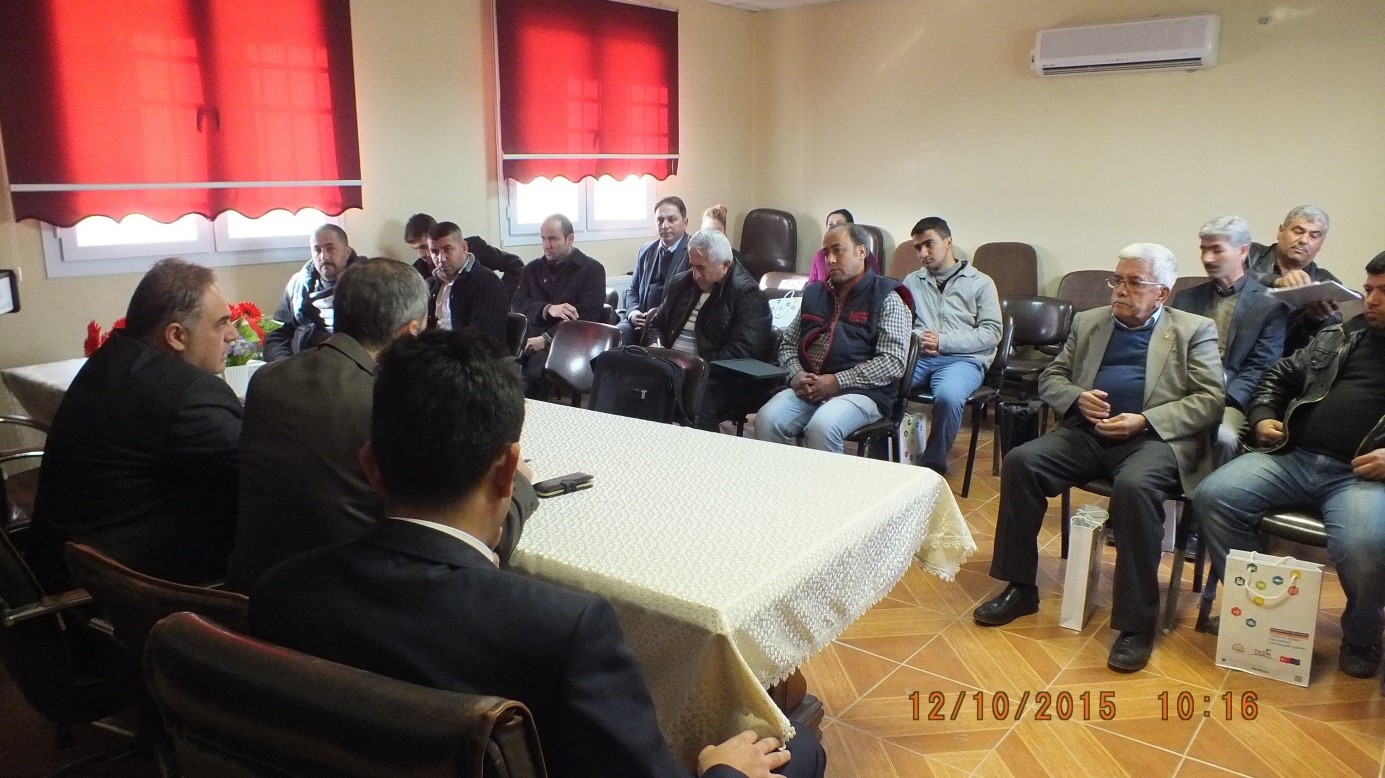 Hatay İli Hassa Tarım İlçe Müdürlüğünde, Hatay Gıda Tarım ve Hayvancılık İlçe Müdürü Sayın Reşat DUYMAZ, TKDK Hatay İl Koordinatörü Sayın Dr. Savaş ÖZGÜRSOY ve 23 katılımcının iştirakleriyle gerçekleştirilmiştir. Katılımcıların yüksek ilgi ile dinledikleri eğitimde, ağırlıklı olarak katılımcıların yetiştiricilik süreçlerinde karşılaştıkları sorunlar ve çözüm önerileri üzerinde durulmuştur.