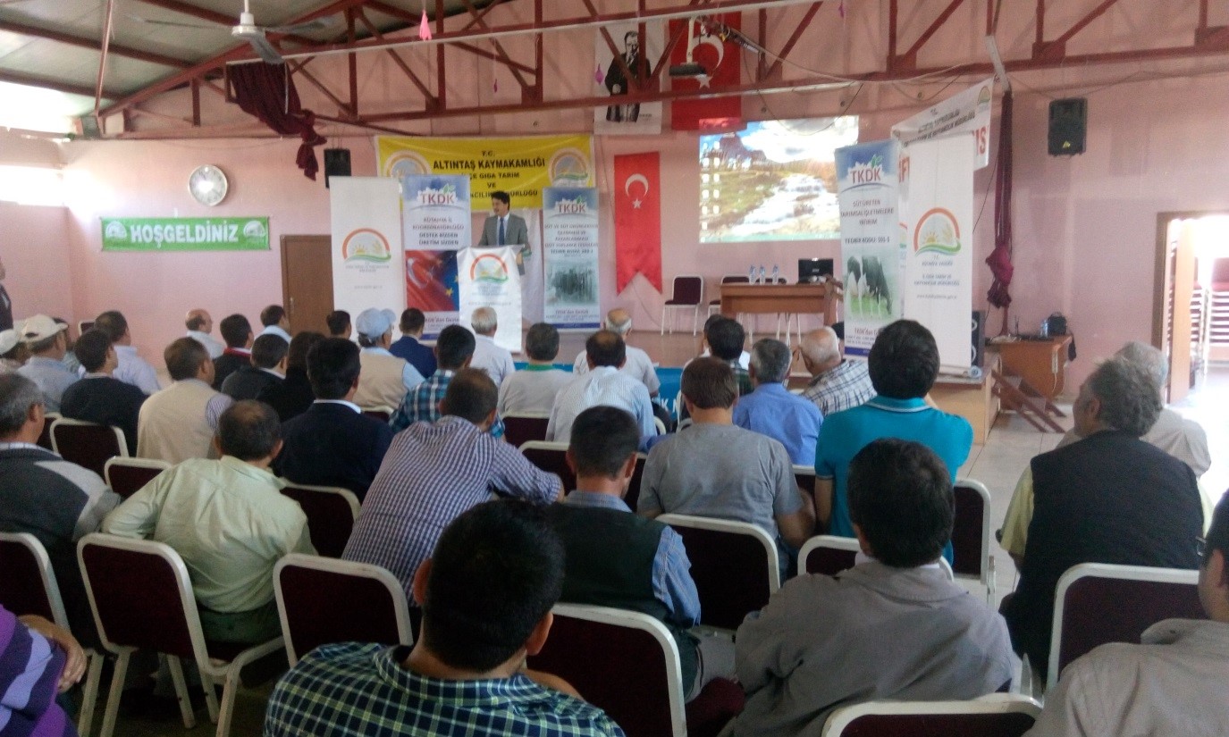 Altıntaş İlçesi Belediye Düğün Salonunda, İl Gıda Tarım ve Hayvancılık Müdürü Sayın Ender Muhammed GÜMÜŞ, İŞKUR İl Şube Müdürü Feyzullah Eren TÜRKMEN, TKDK Kütahya İl Koordinatörü Sayın İhsan KAYMAK ve 36 katılımcının iştirakleriyle gerçekleşen eğitime ilgi yüksek olmuştur. Katılımcılardan gelen soru ve görüşlerin de konuşulduğu eğitimlerde ayrıca sözleşmeli üretim ve üretici birliklerinin kurulması konularında da görüş alış verişinde bulunulmuştur. Eğitimlerin tekrarlanması temennileri katılımcılar tarafından dile getirilmiştir.